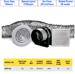 - 1 x Inline Fan (MTP132-150mm in-line duct fan)